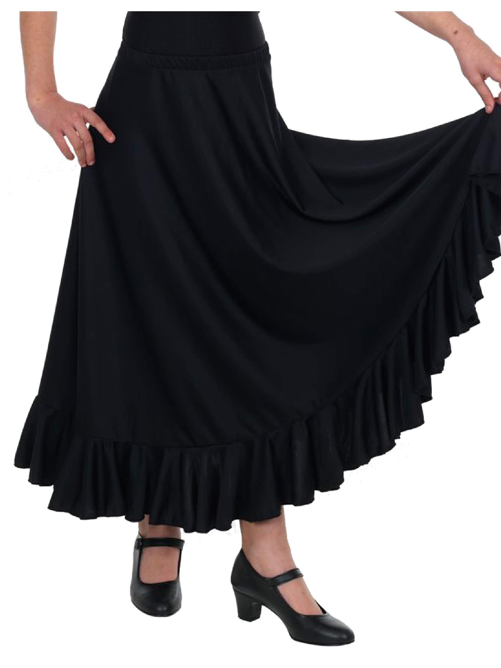 Falda de flamenco de media capa con un volante, largo a tobillo. Confeccionada en punto de seda. Falda básica para ensayo. Fabricación nacional.