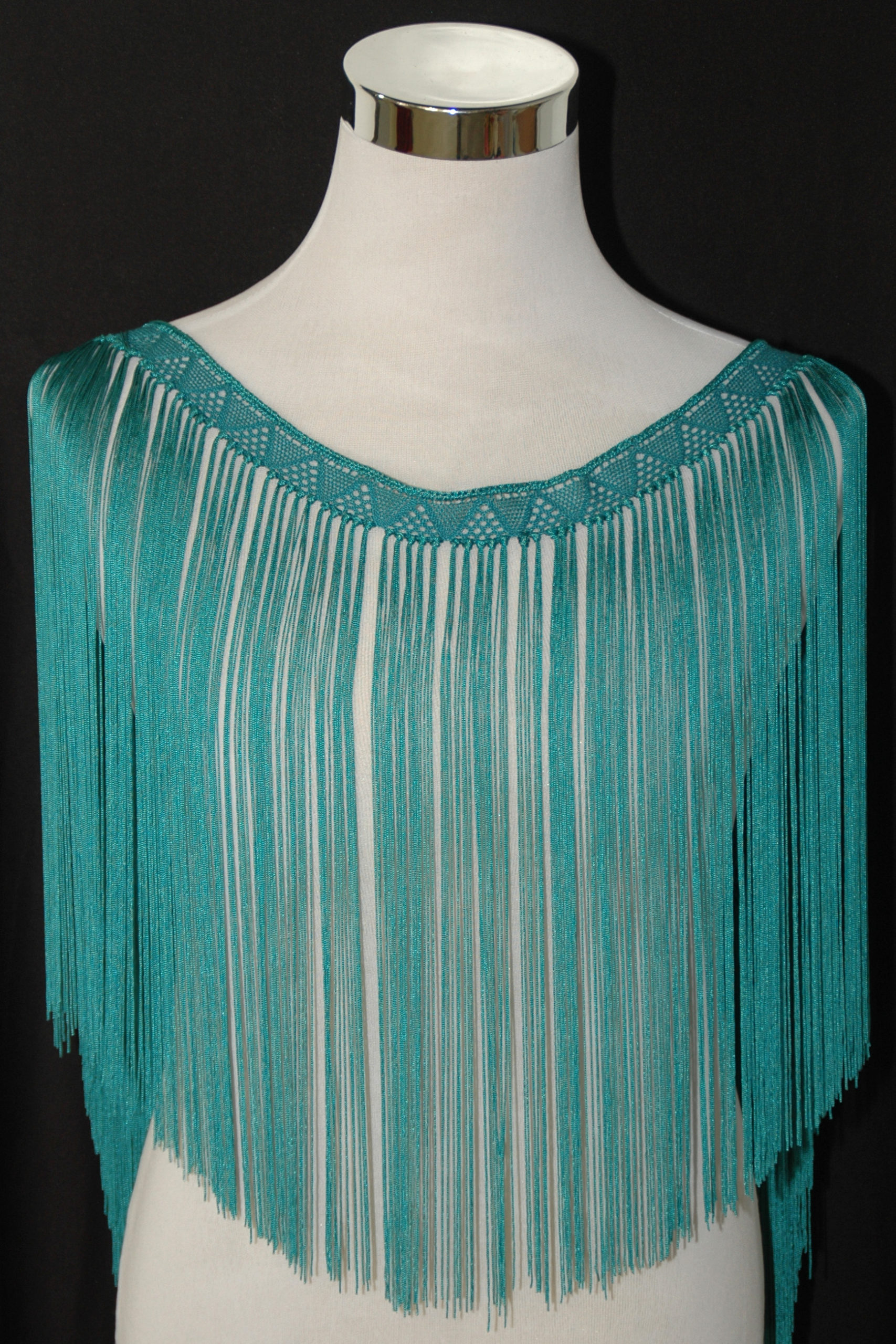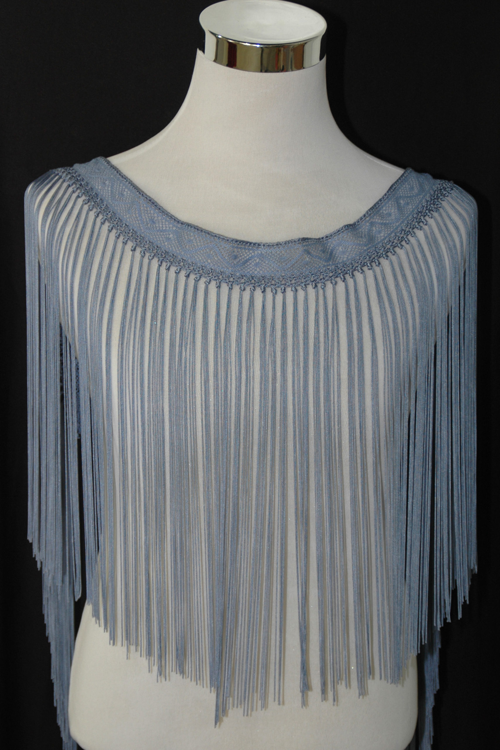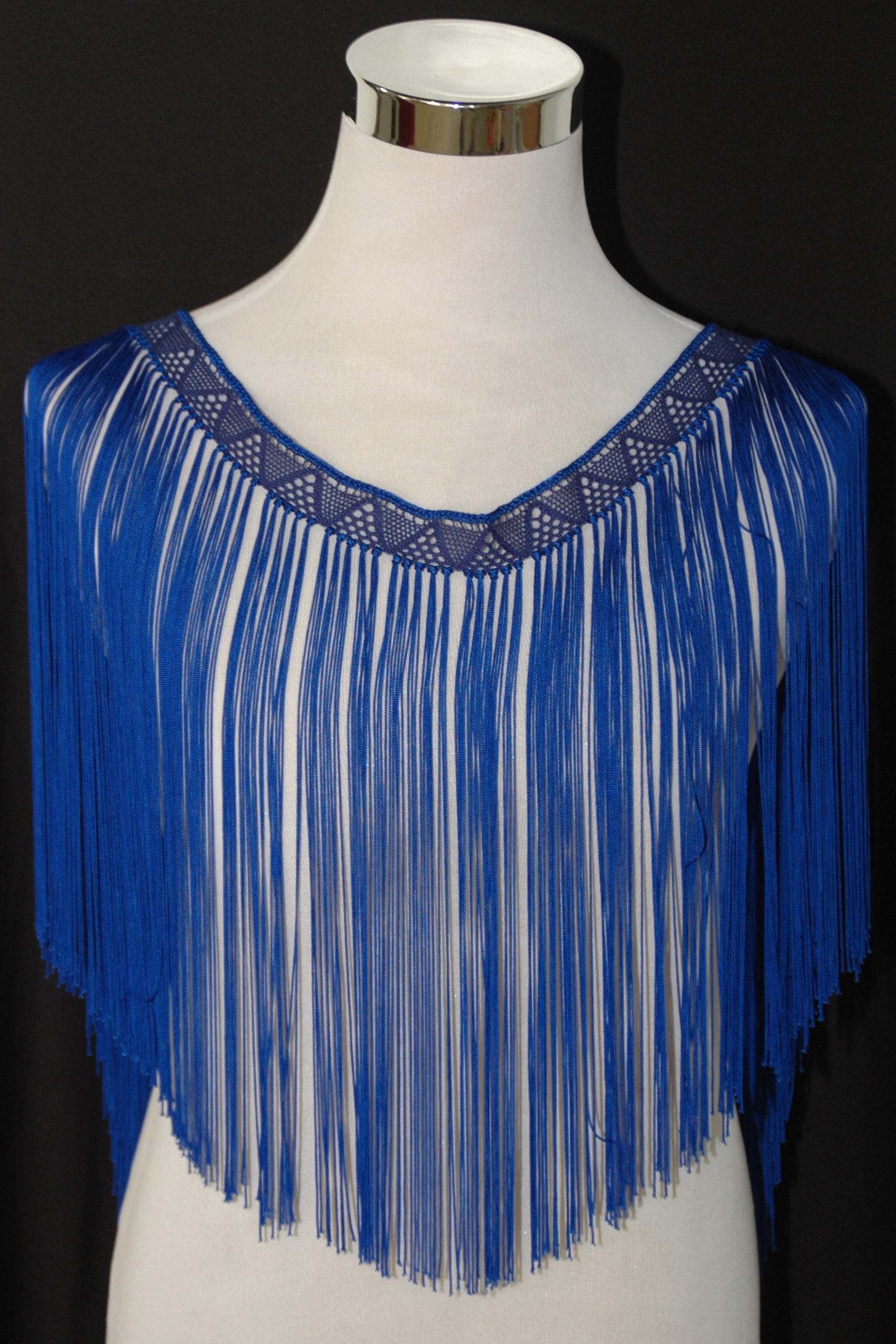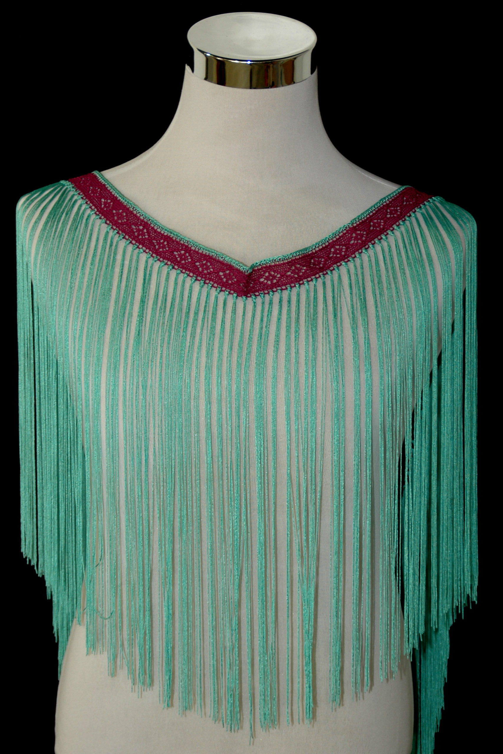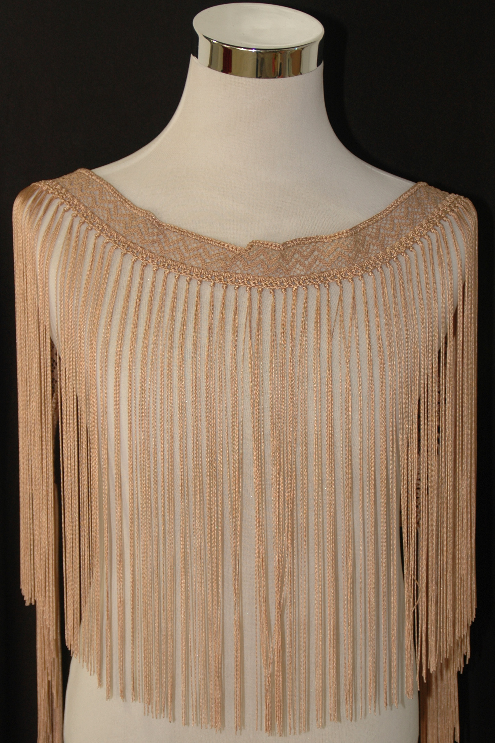 Encaje de bolillo con fleco de cuquillo de 40 cm de largo para coser al escote de un vestido. El largo es de 1,20-1,30 cm aproximadamente. Hechas a mano.
