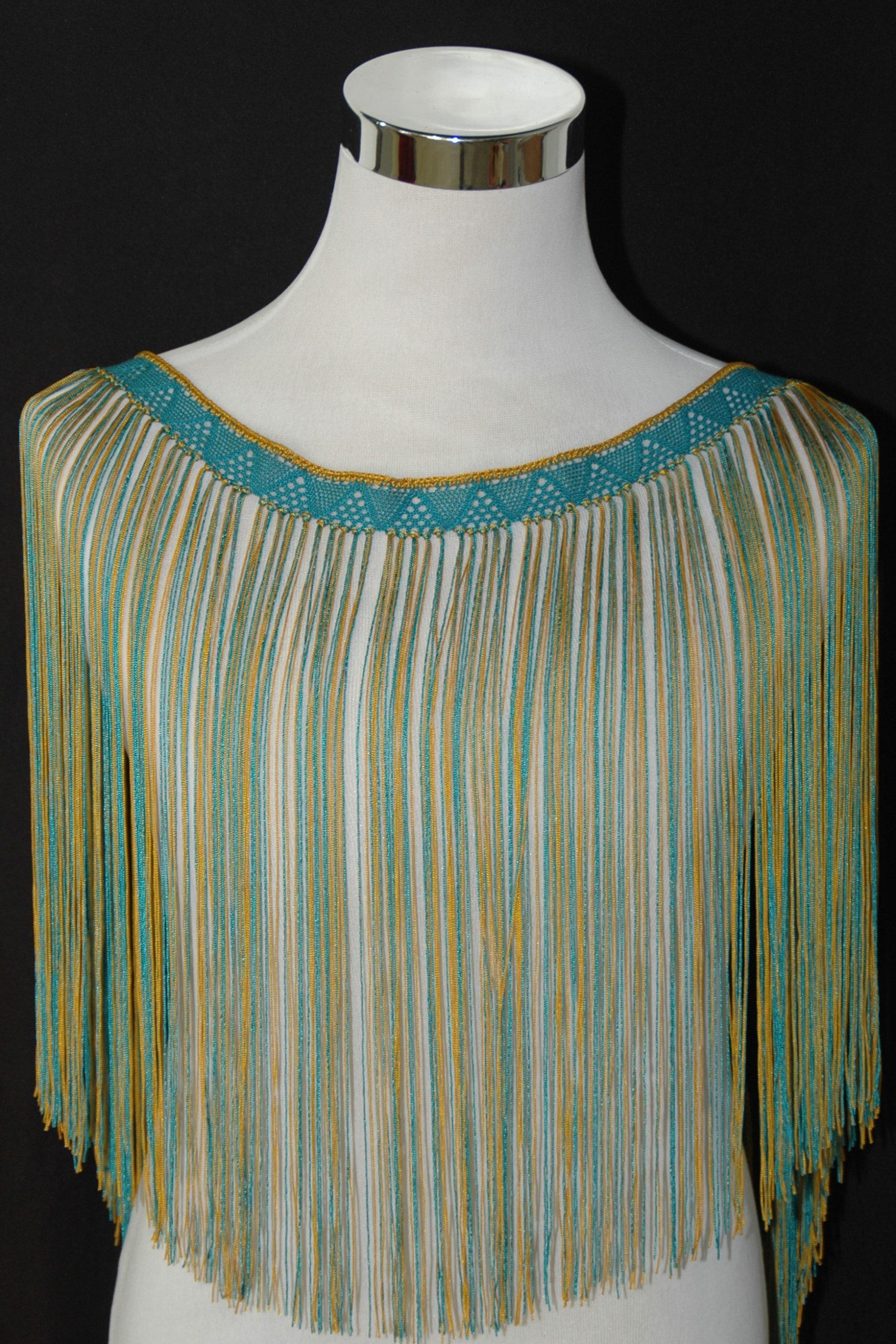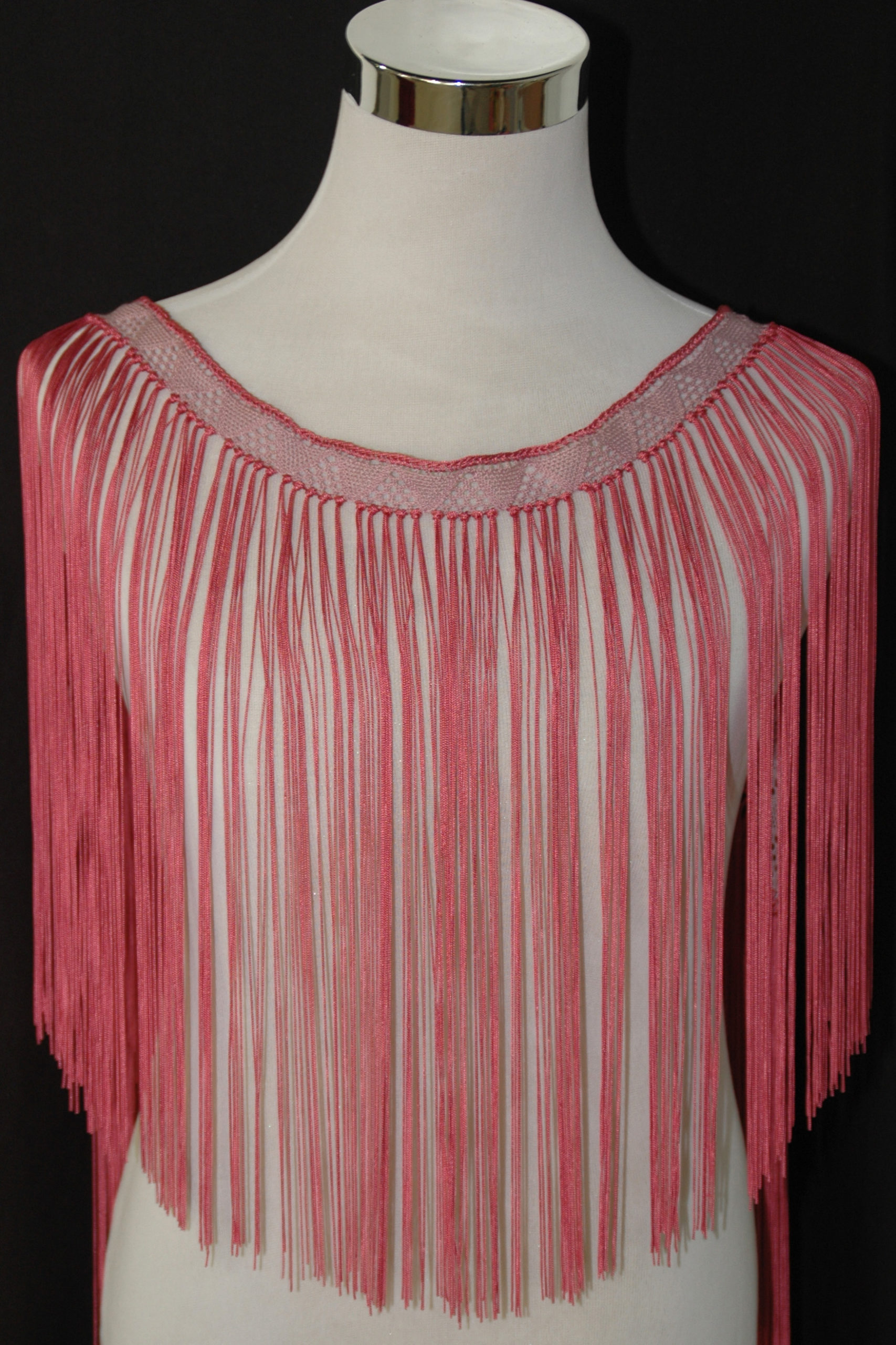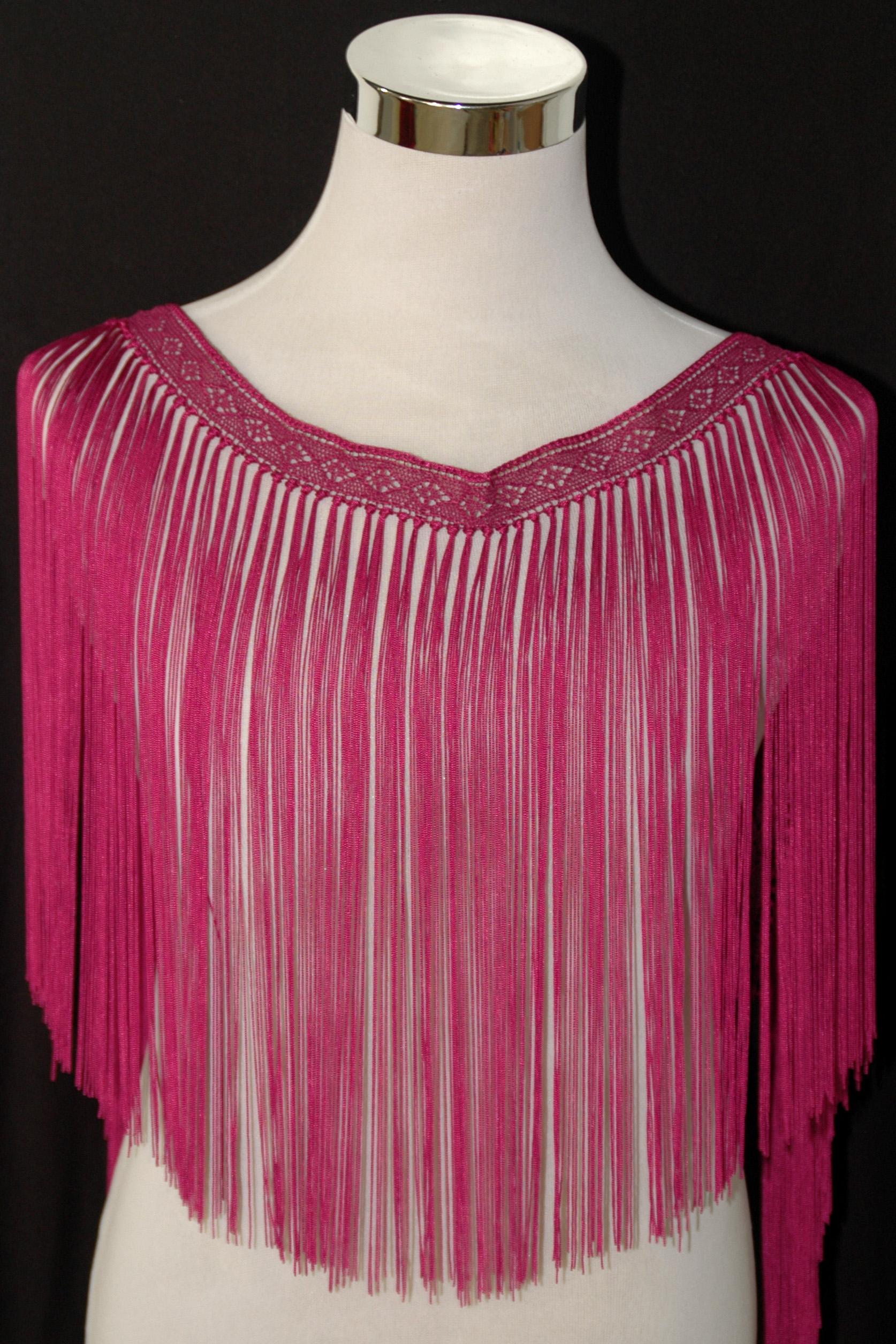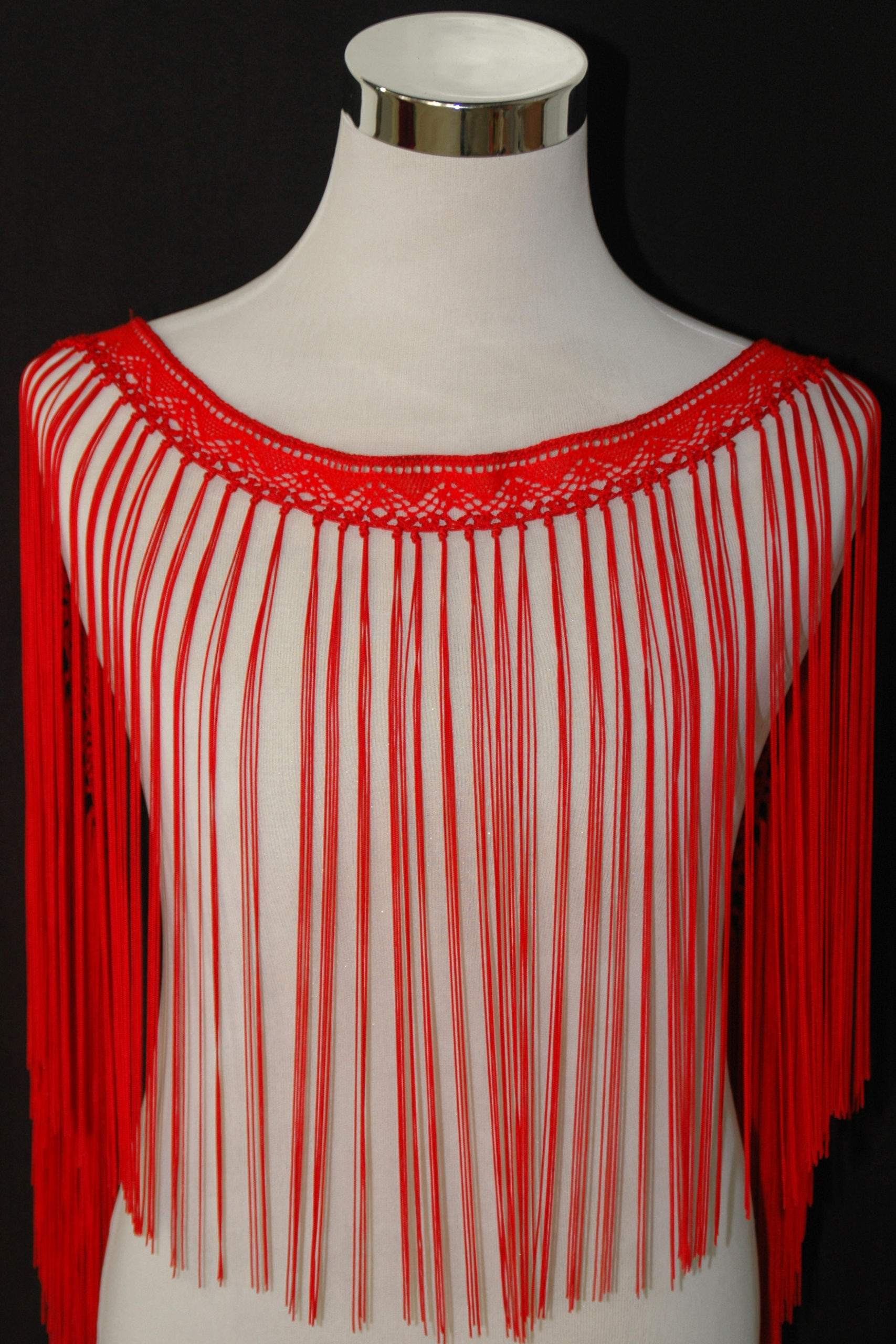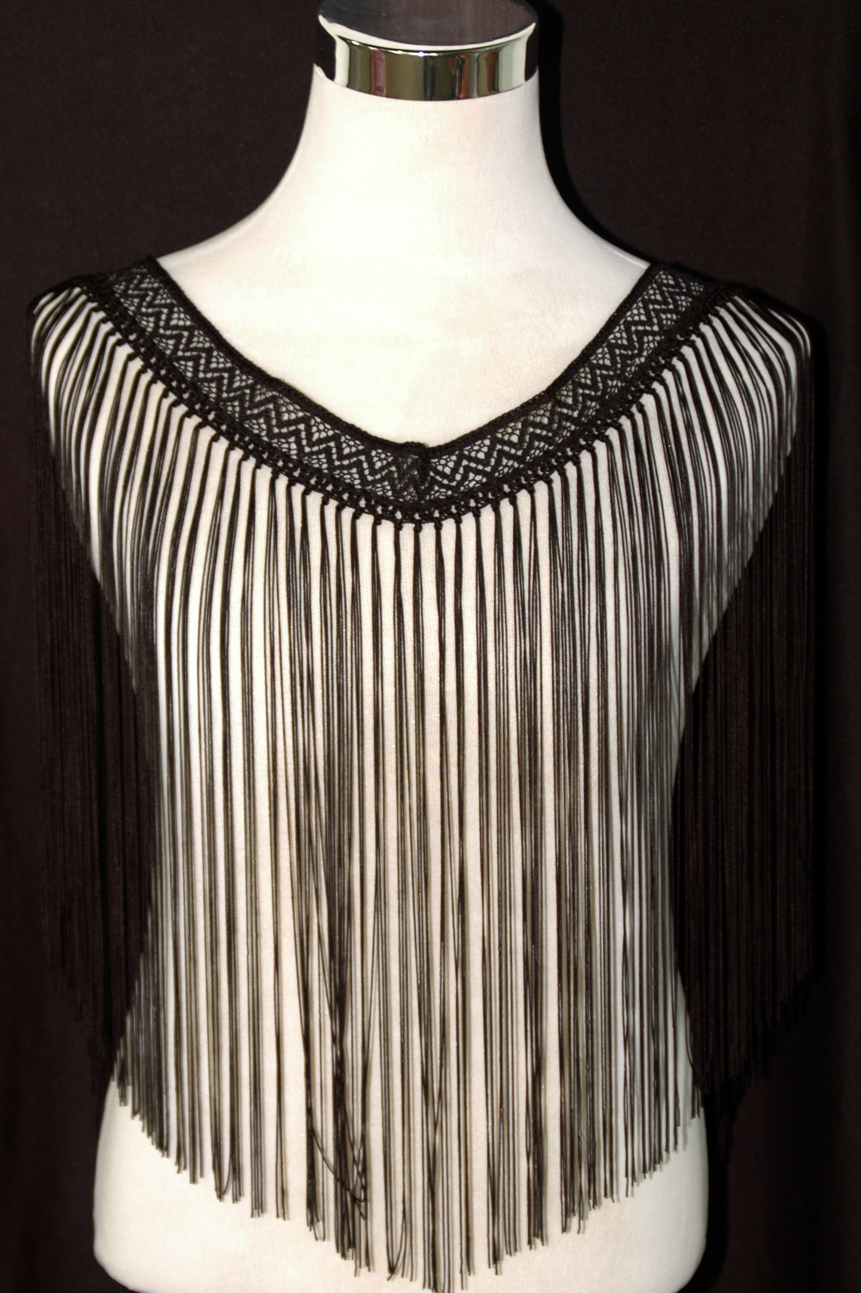 Encaje de bolillo con fleco de cuquillo de 40 cm de largo para coser al escote de un vestido. El largo es de 1,20-1,30 cm aproximadamente. Hechas a mano.