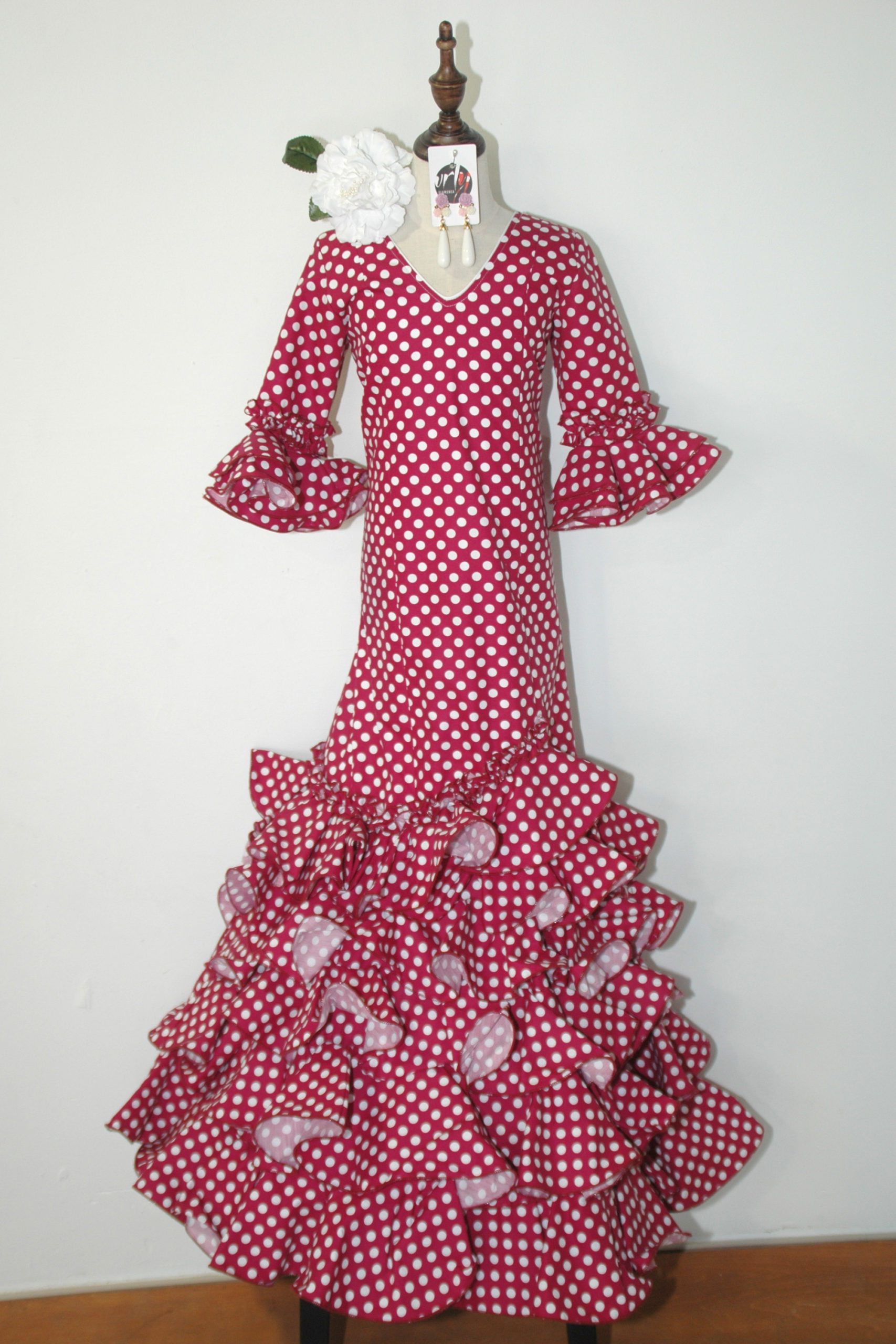 Vestido flamenca niña en popelin bugambilla con lunar blanco. Talla 16.